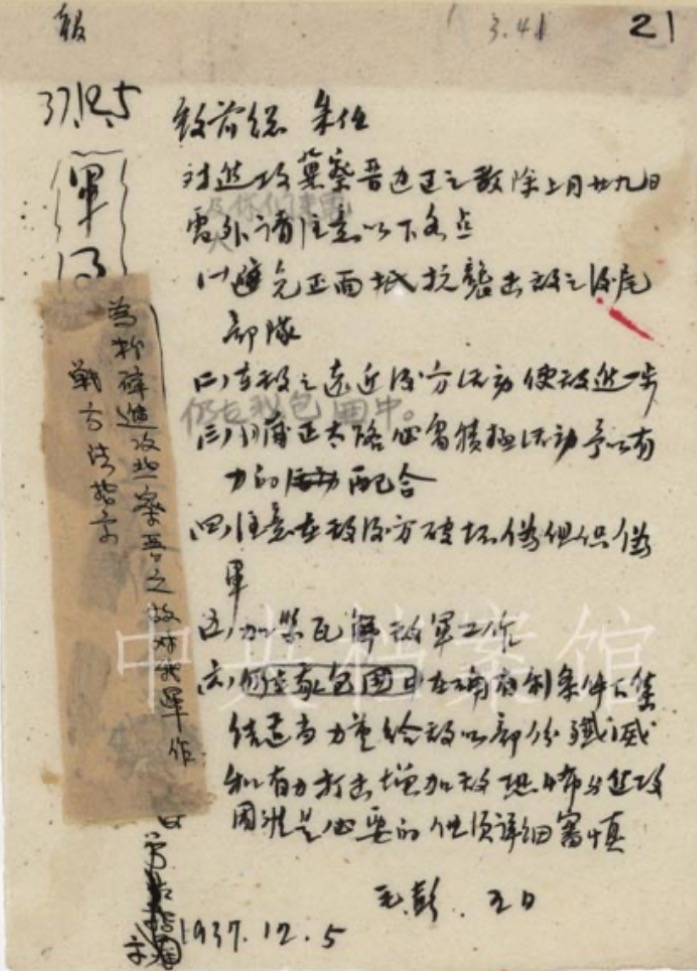 1937年12月,华北抗战形势急剧恶化。北平、天津、太原相继沦陷后,日军集中兵力向晋察冀边区发动大规模围攻,企图扼杀中国共产党在敌后刚建立的第一个抗日根据地——晋察冀抗日根据地。此时八路军主力正分散开展游击战,兵力薄弱且缺乏稳固后方。面对日军机械化部队的“分进合击”,毛泽东与彭德怀紧急拟定作战方案,于12月5日联名致电八路军总部朱德、任弼时,部署反围攻作战。