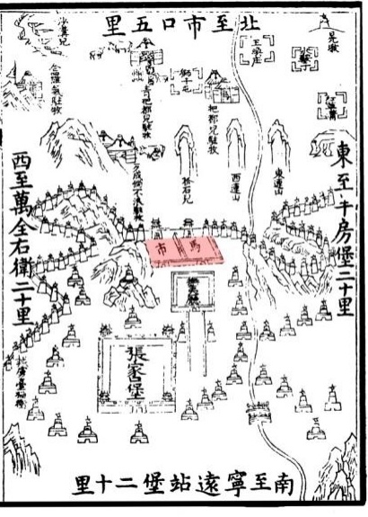 明万历年间张家口堡马市。据《宣大山西三镇图说·图》改绘